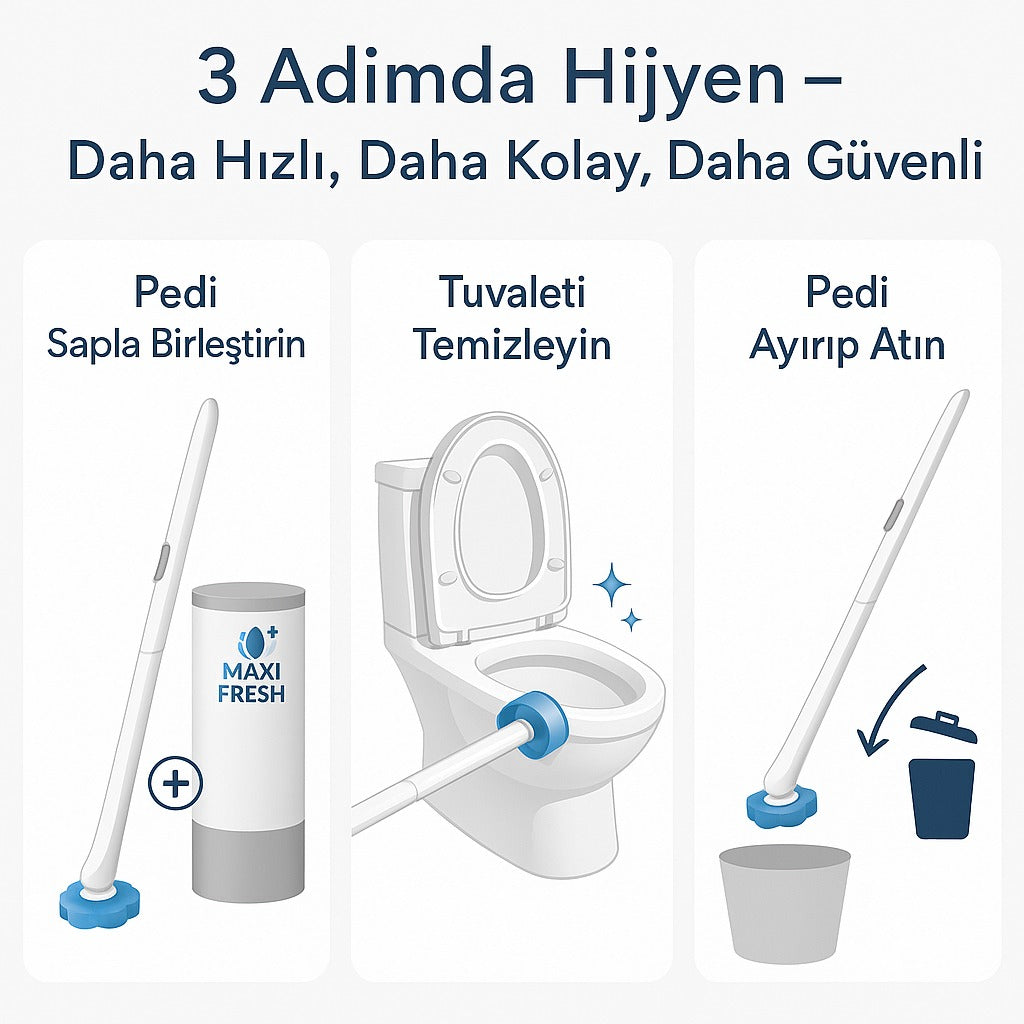 Tak, temizle, at! MaxiFresh ile tuvalet temizliği saniyeler içinde hijyenik ve pratik.